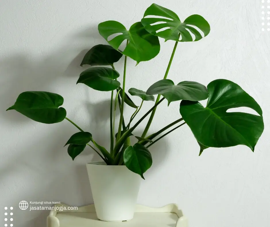 Tidak hanya mempercantik ruangan, monstera juga memberikan manfaat tambahan seperti meningkatkan kualitas udara dan menciptakan suasana yang segar serta alami.